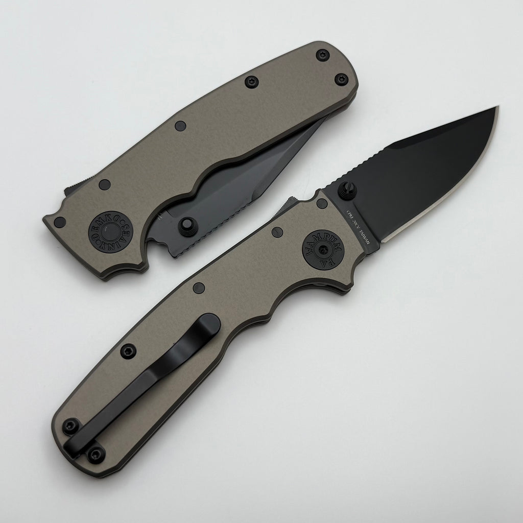 Demko Shark Cub Stealth Artillery Grey Aluminum Handles & Clip Point DLC 20CV