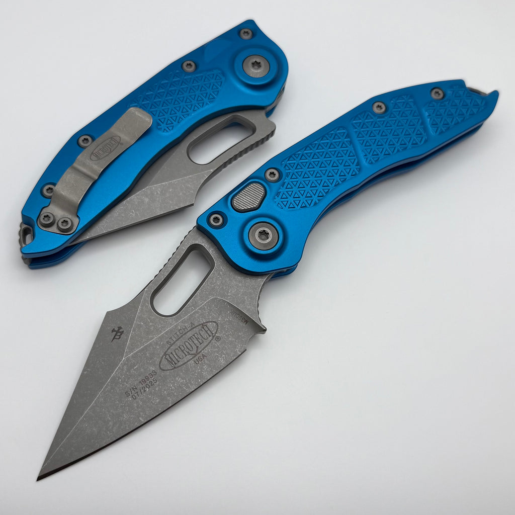 Microtech Borka Stitch Auto w/ Blue Handles & Apocalyptic M390 169-10APBL