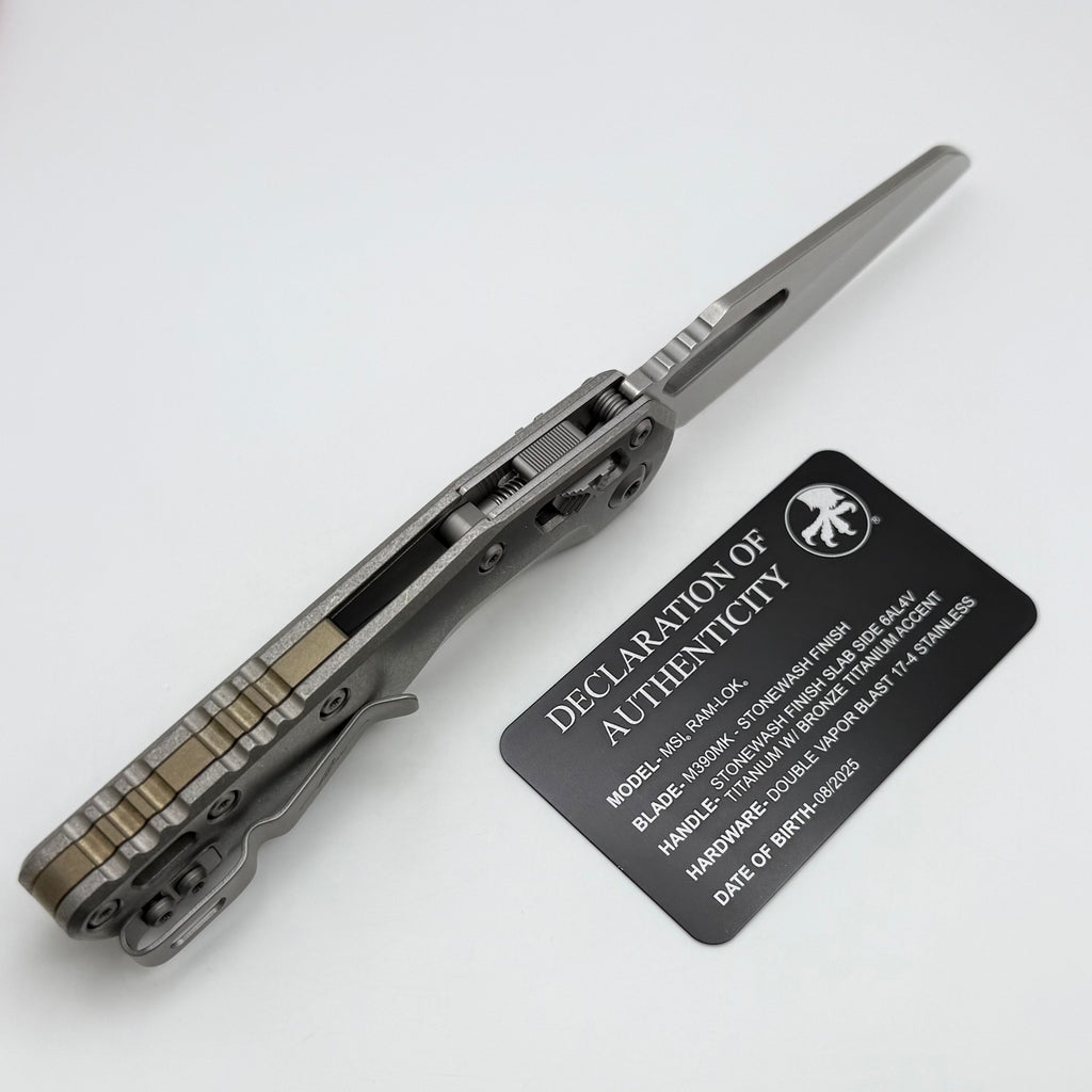 Microtech Marfione Select MSI RAM LOK Titanium Handles w/ Double Vapor Blast & Bronze Accents & Stonewash M390MK 210-10MS1