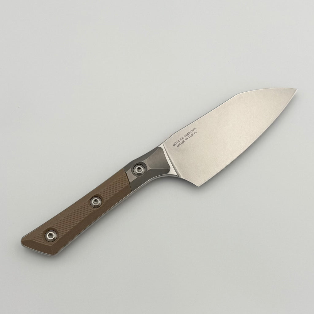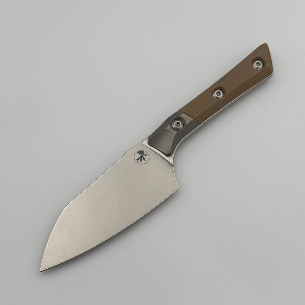 Microtech Santoku 4.2" Coyote Tan G-10/Titanium Bolster Handle w/ Stonewash M390MK 3300B-10CE