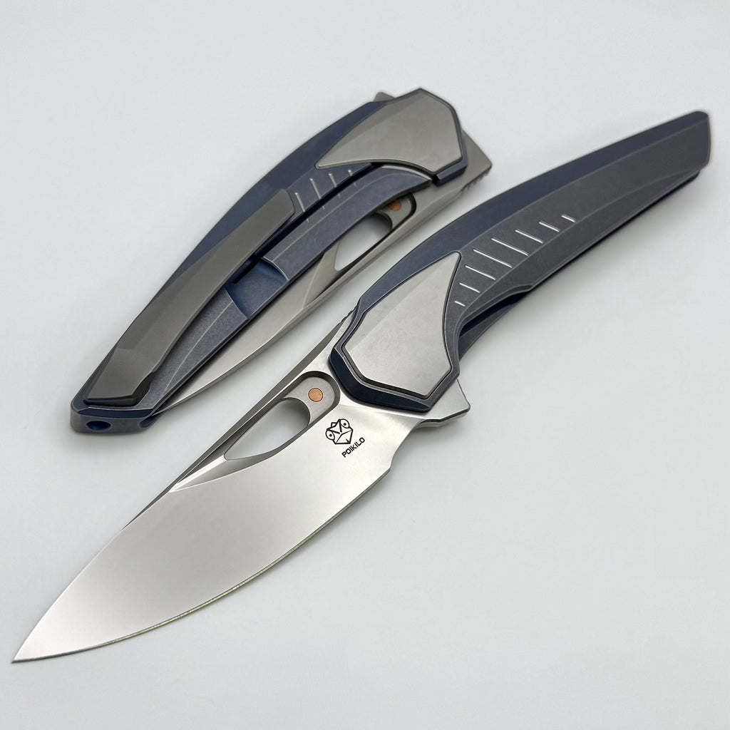 Poikilo Blade VK-Zame Shark S2 Blue Stonewash Titanium Integral Handle w/ Crystal Ti Inlays & Pearlescent M398