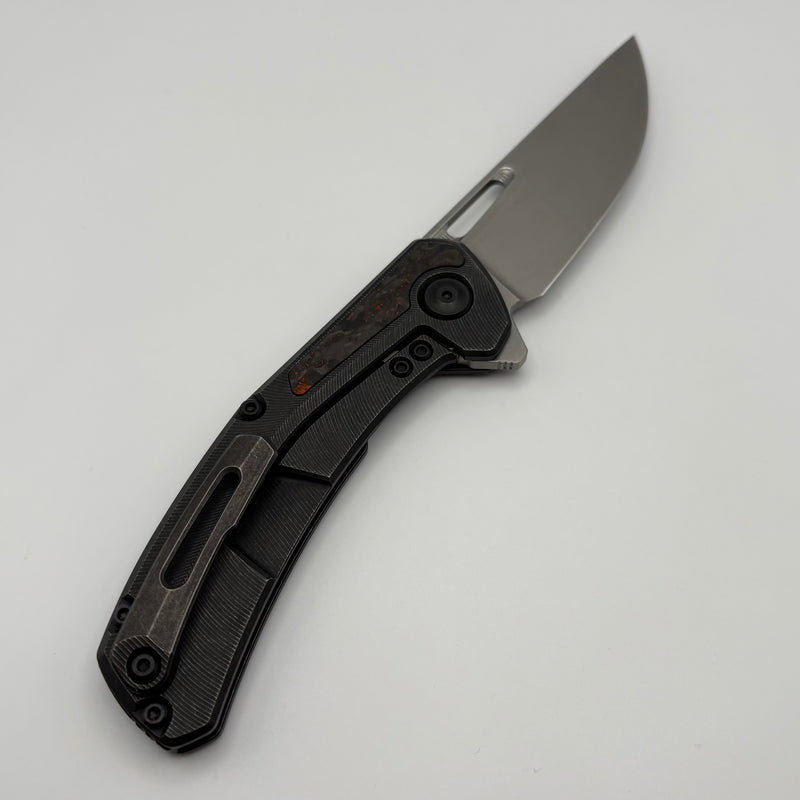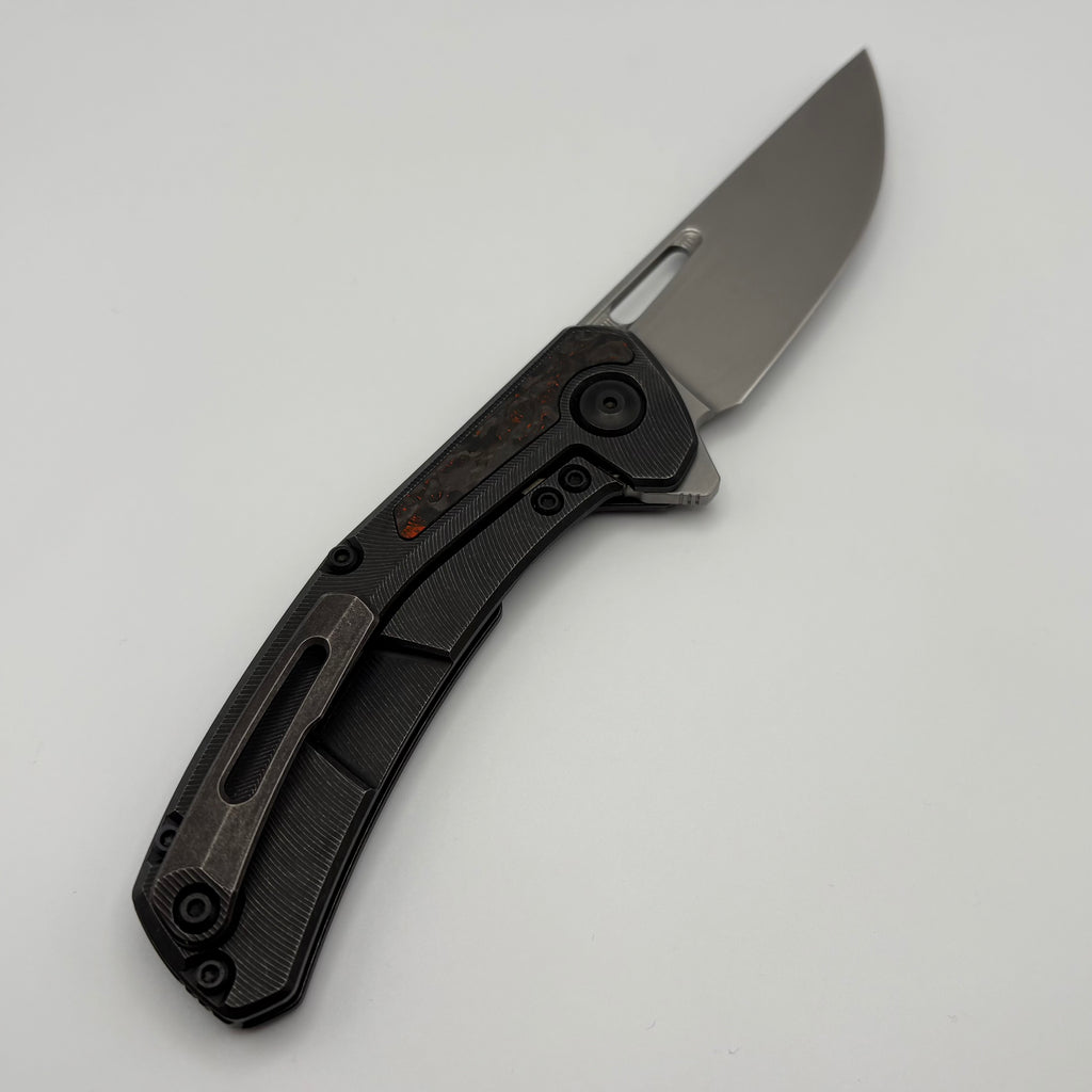 Pre-Owned Tactile Knife Co Archer Orange TechnoCarbo Inlaid Blackwash Titanium Framelock w/ MagnaCut