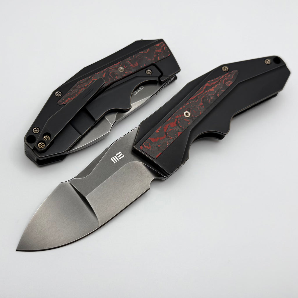 We Knife Coral SLT Flipper w/ Bronze/Black Titanium Handle w/ Lave Flow Fat Carbon Inlays & Polished Gray CPM-20CV WE24044-3