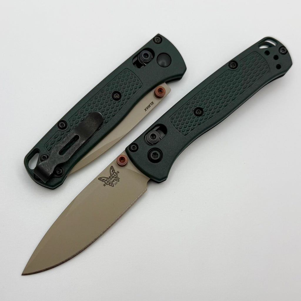Benchmade Mini Bugout Taiga Green Grivory Handle & McMillan Tan Cerakote Elmax 533TN-2601