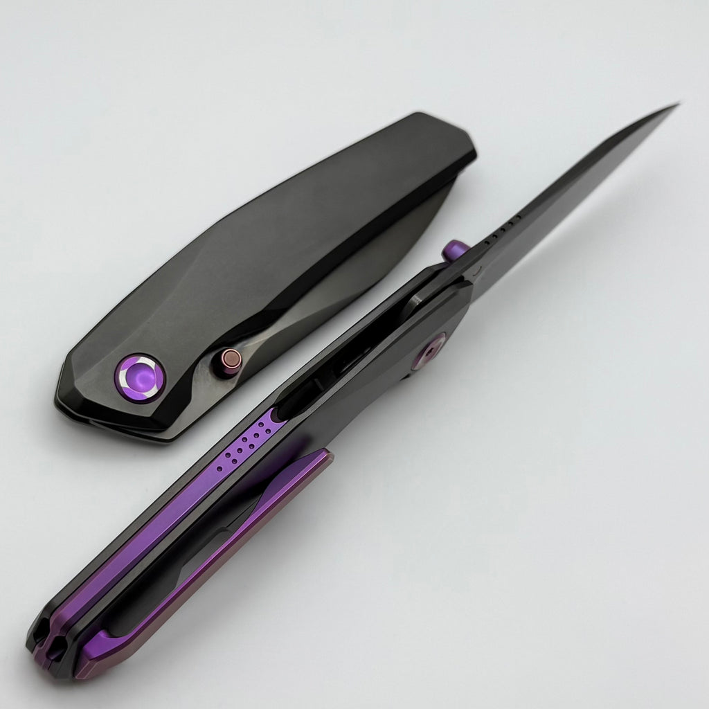 Poikilo Blade Zen S3 Blackened Titanium Handles w/ Purple Ti Accents & DLC Pearlescent Stonewash M398