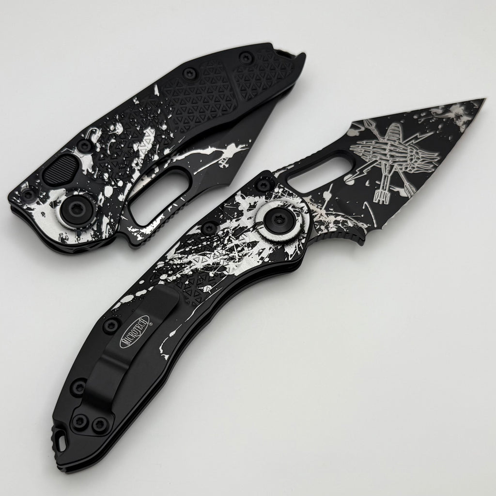 The Microtech Stitch is a production version of the custom knife collaboration between Marfione and Borka Blades. This model features a spear point style blade, substantial choil and thumb ramp, and a knurled alloy handle with a black finish. Most of our Stitch knives come fitted with bead blasted hardware unless DLC or Tactical, and a secure right-hand, tip-up carry pocket clip.