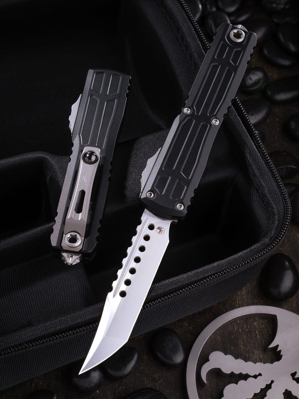 As the flagship model of the Microtech® OTF lineup, this is the final generation of the Ultratech®.  The ZBP Ultratech sets the standard for Out-The-Front technology and this one is sure to please with multiple upgrades. These Zero Blade Play Ultratech's have M390MK blades and stainless steel Torx hardware. They have milled titanium pocket clips with ceramic balls, and the new stainless steel glass breaker. The contoured chassis handle provides a lighter and more ergonomic feel and comes in a smooth, flat finish.
