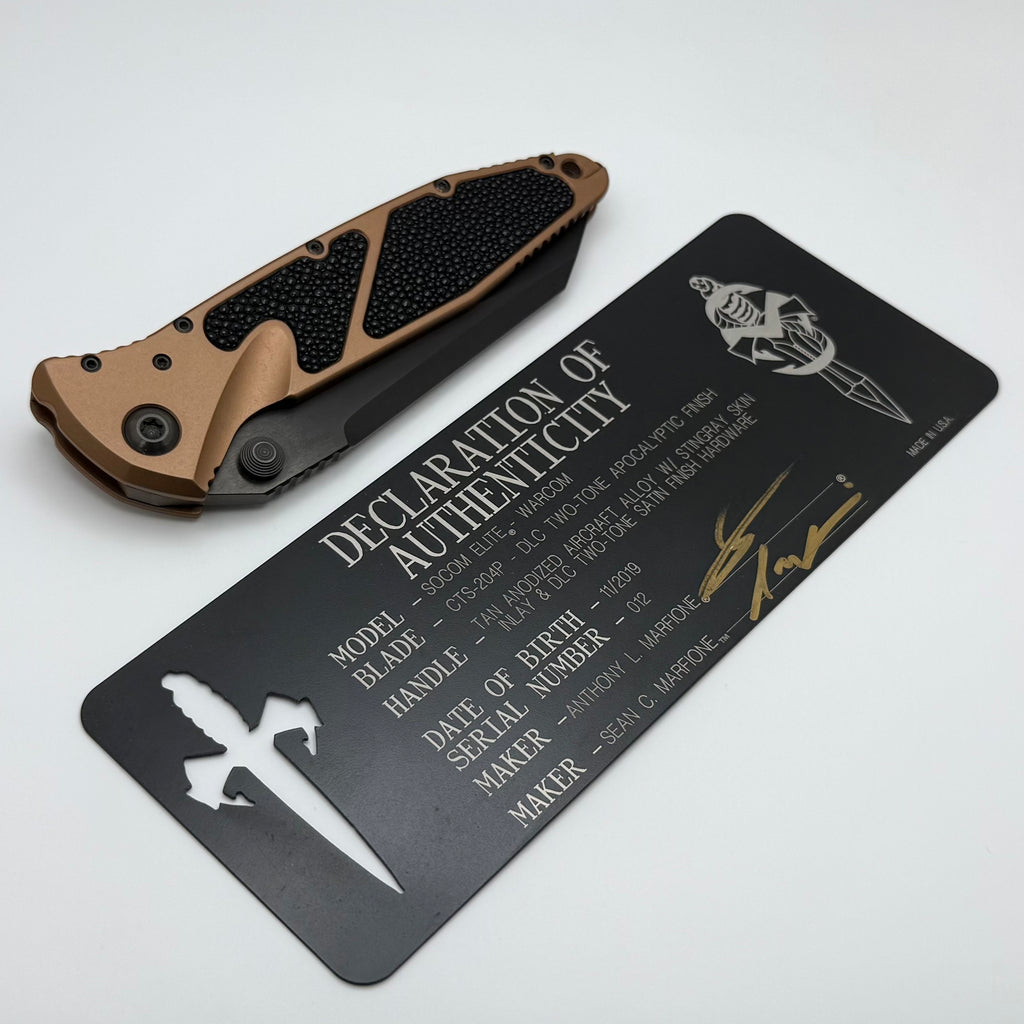 Marfione Custom Knives Socom Elite Warcom DLC Two Tone Apocalyptic w/ Tan Stingray Inlaid Handle & DLC Hardware #12 Consigned