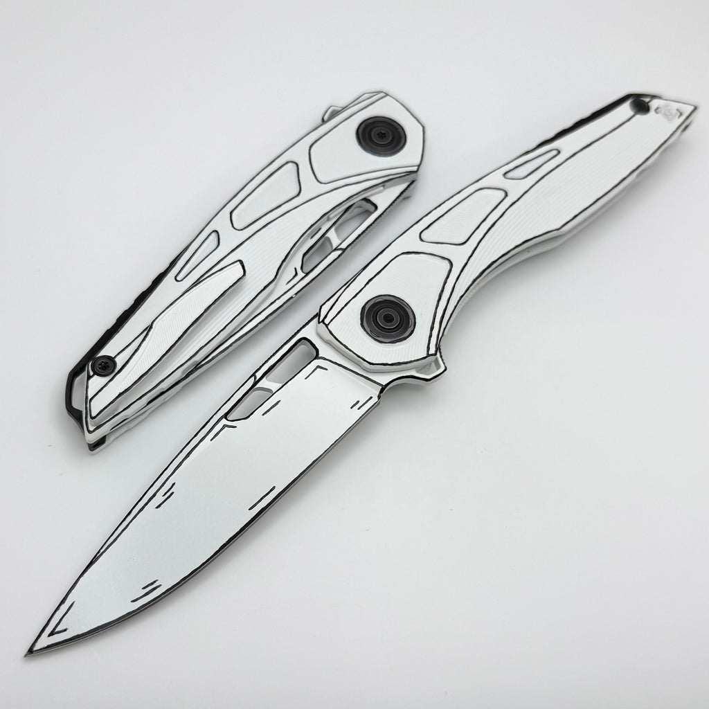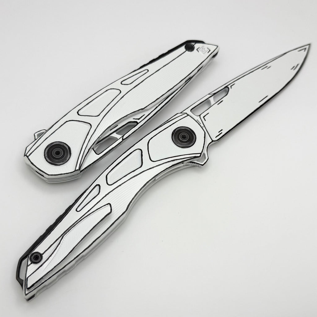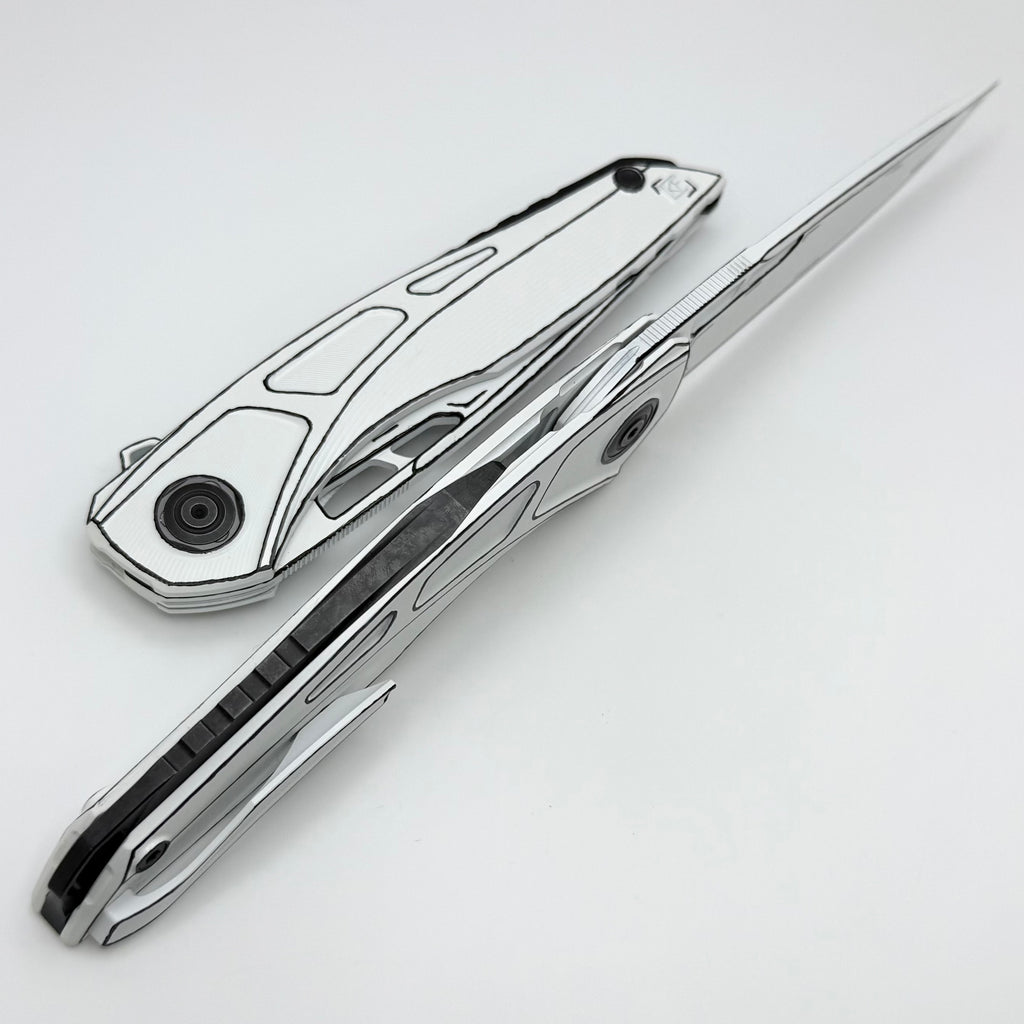 Custom Knife Factory Cel Shaded White Sukhoi-5 Titanium Handles w/ Crystal Ti Backspacer & M398 One Per Household
