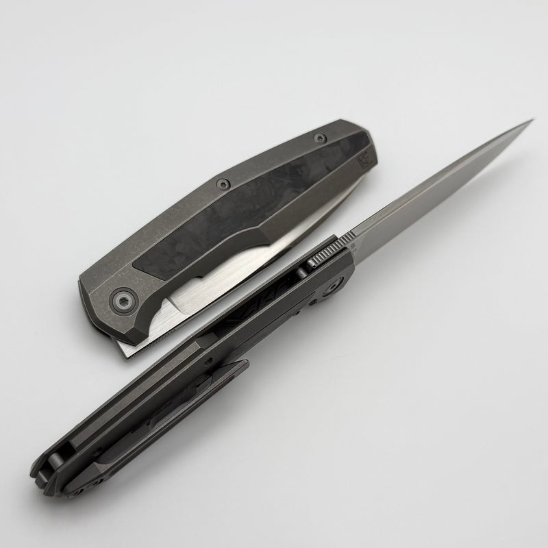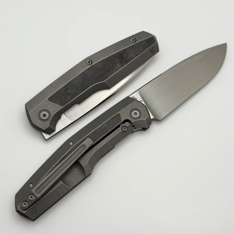 Custom Knife Factory FIF18 Tumbled Titanium Handles w/ Carbon Fiber Inlay & M398 PRE ORDER