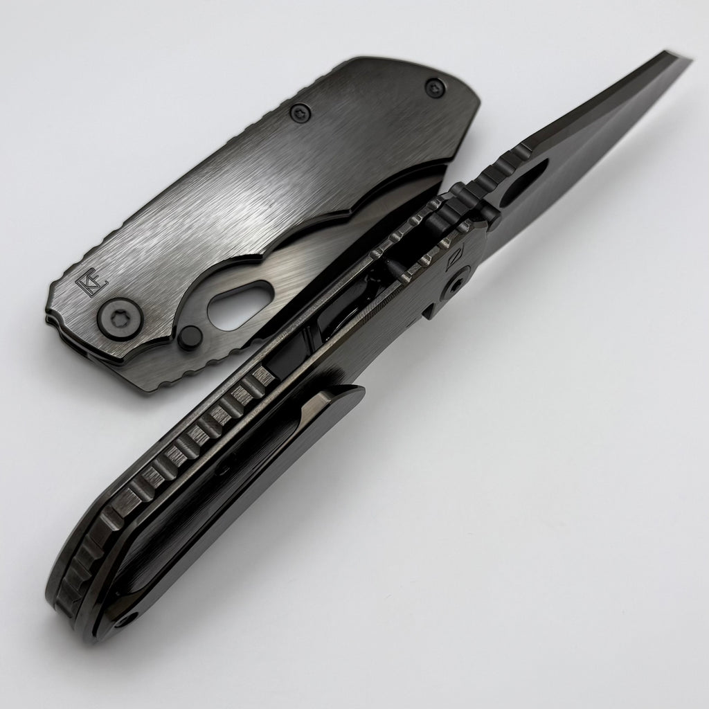 Factory Blem Custom Knife Factory & Rotten Design EVO 1.1 Polished DLC Ti Handles w/ M398