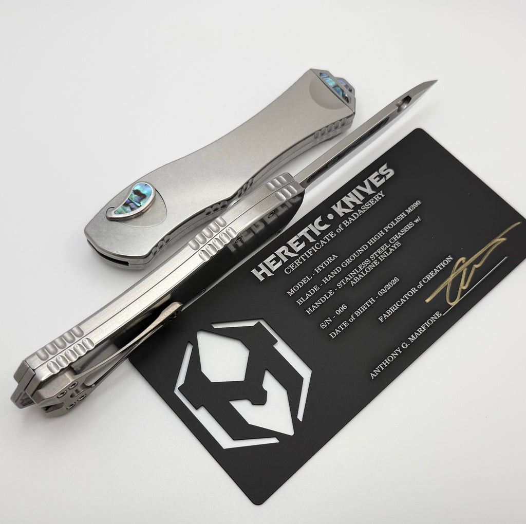 Heretic Custom Hydra V4 Stainless Steel Handle w/ Abalone Inlays & Mirror S/E