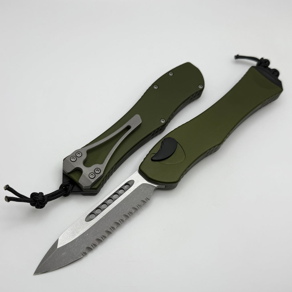 Heretic Hydra V4 w/ OD Green Aluminum Handle & Battleworn S/E Full Serrated H407-5C-OD
