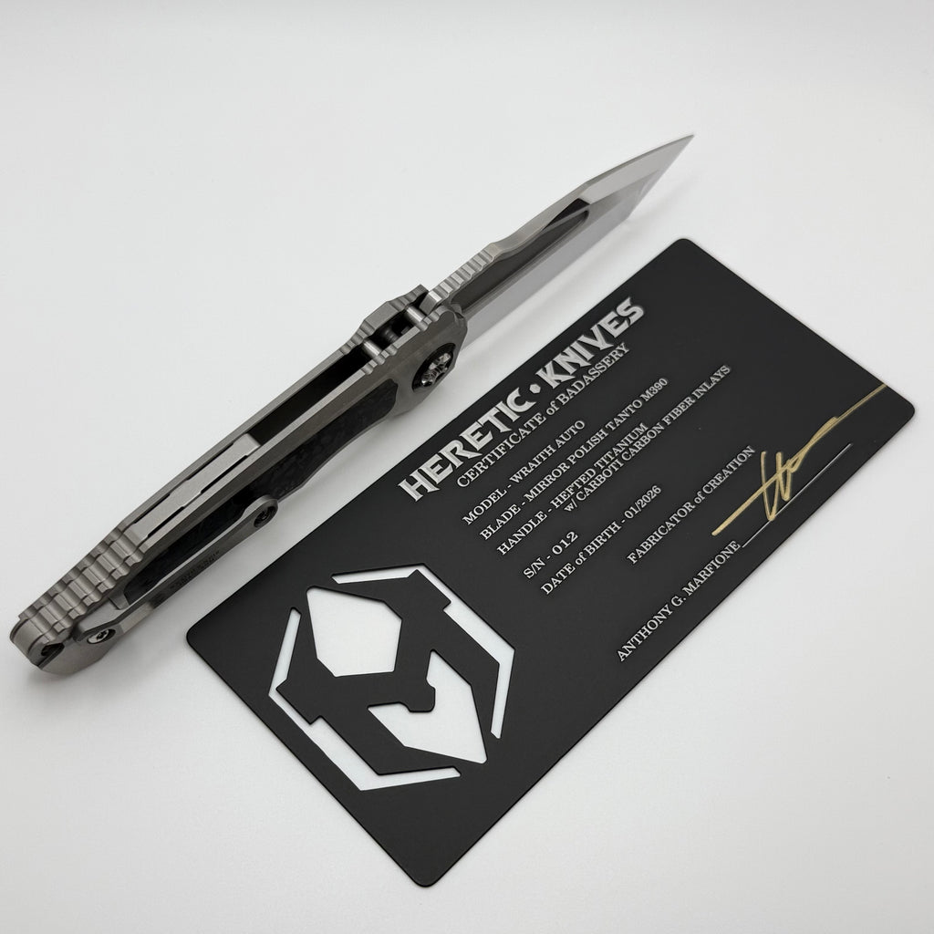 Heretic Knives Custom Wraith Auto V4 w/ CarboTi Inlays & Hand Ground Mirror M390 Tanto