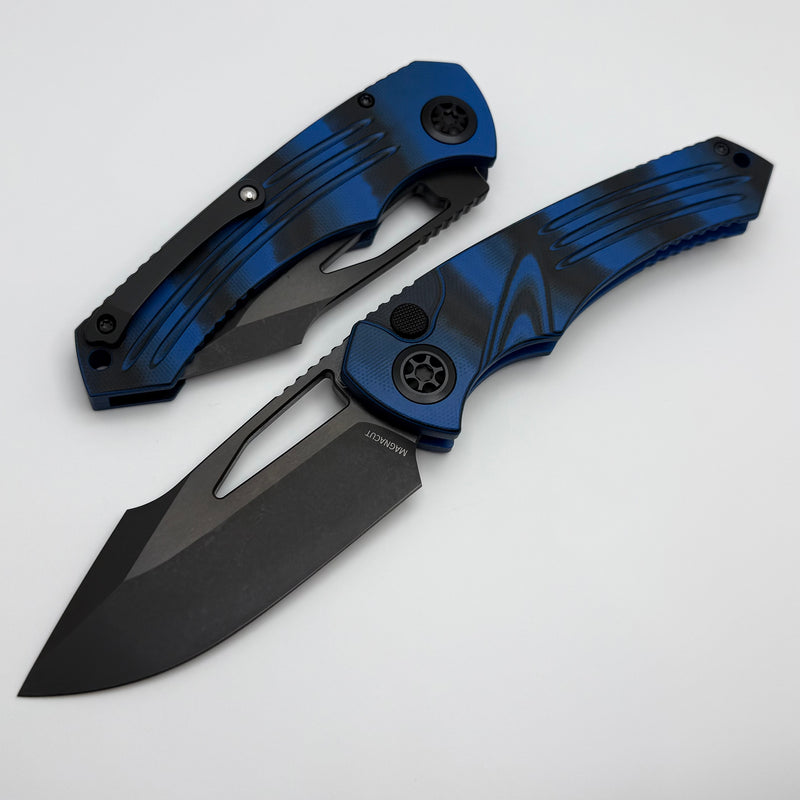 Heretic Knives Pariah M/A Button Lock Blue G10 Handles w/ DLC MagnaCut H046-6A-G10/BLU