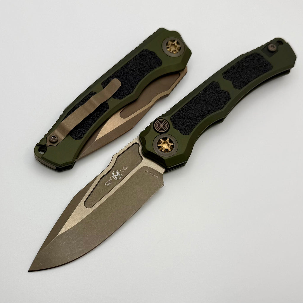 Heretic Knives Wraith Auto w/ OD Green Handle & Bronze MagnaCut H000-7A-GRN