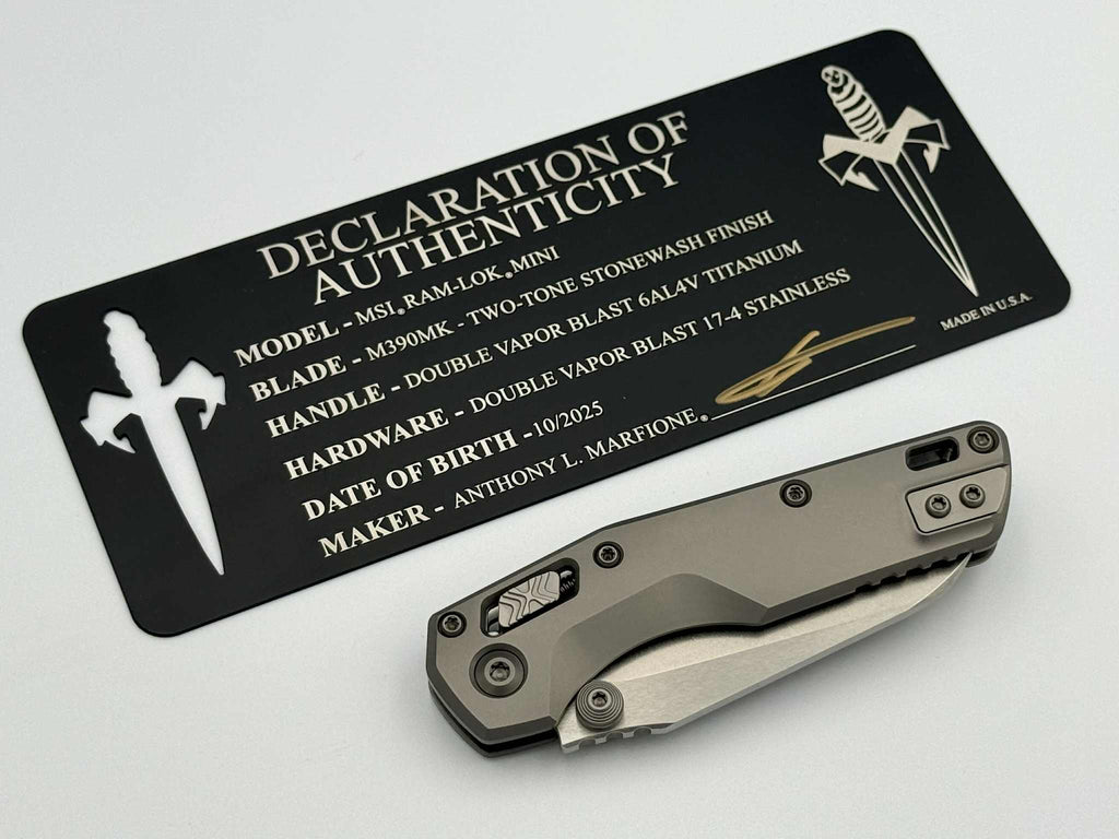 Marfione Custom MSI RAM LOK Mini Double Vapor Blast Titanium Handles w/ Double Vapor Accents & Two Tone Stonewash M390MK
