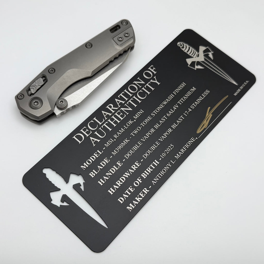 Pre Owned Marfione Custom MSI RAM LOK Mini Double Vapor Blast Titanium Handles w/ Double Vapor Accents & Two Tone Stonewash M390MK