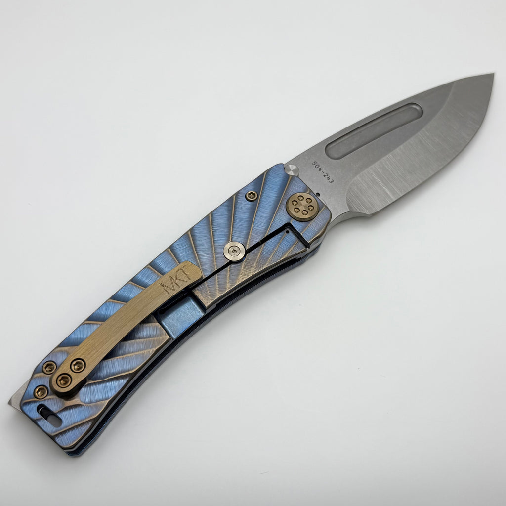Medford Marauder Full Size Blue/Bronze Rising Sun Titanium Handles w/ 0.26" Tumbled Drop Point MagnaCut