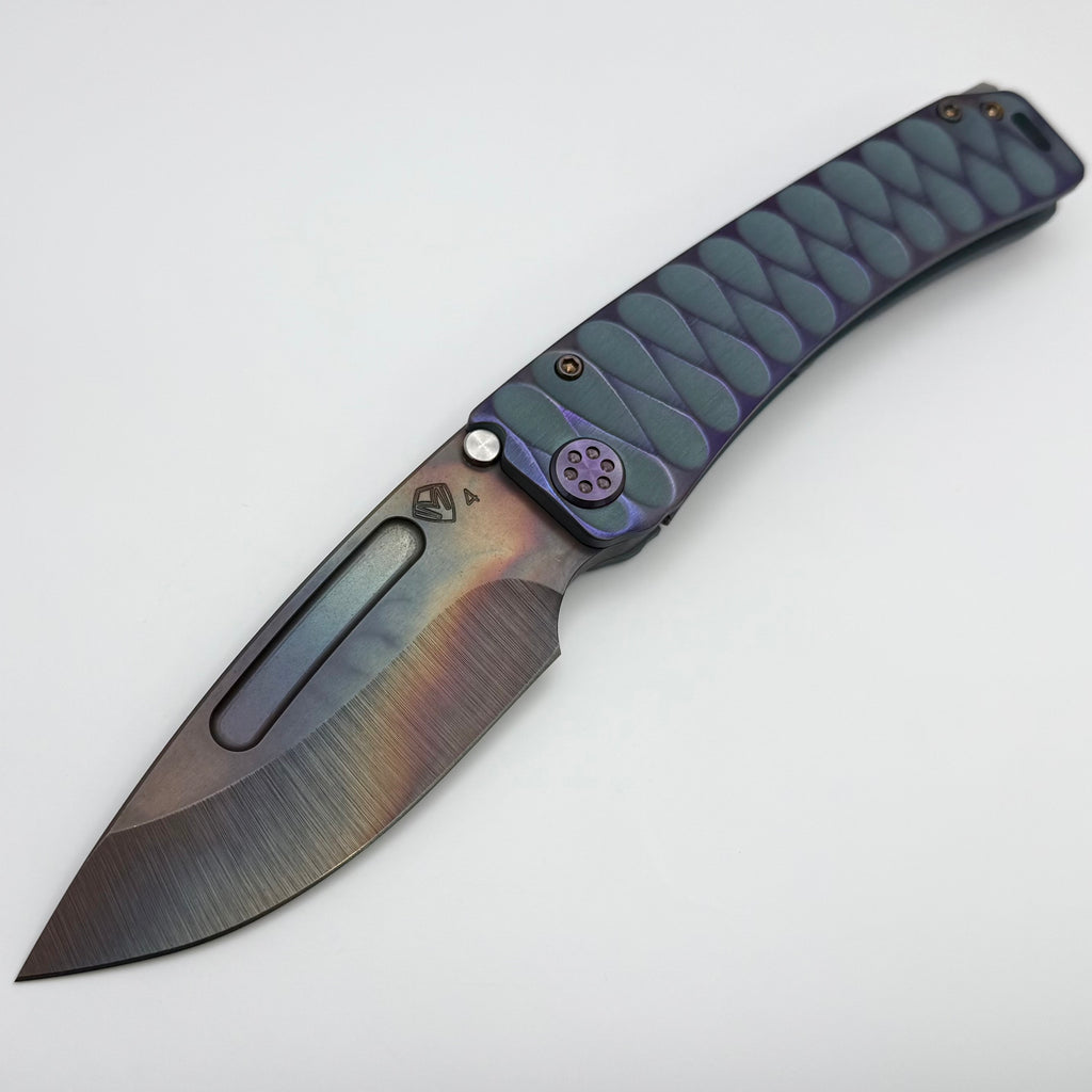 Medford Marauder Full Size Green/Violet Tear Drop Titanium Handles w/ 0.26" Vulcan S45VN Drop Point