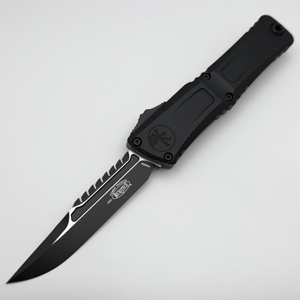 The all new Combat Troodon Gen III from Microtech Knives is here! Featuring a newly designed handle with an integrated glass breaker and a ceramic ball titanium pocket clip. The new OTF drive system makes these knives the smoothest that Microtech has ever produced. Extremely smooth/easy opening and closing. The new switch now rides on a milled platform, this helps break up pocket lint/debris and reduces friction which increases its reliability and lowers the frequency of cleanings. The handle now has Torx screws to make it easy to disassemble and clean. These models are completely redone and are sure to please!