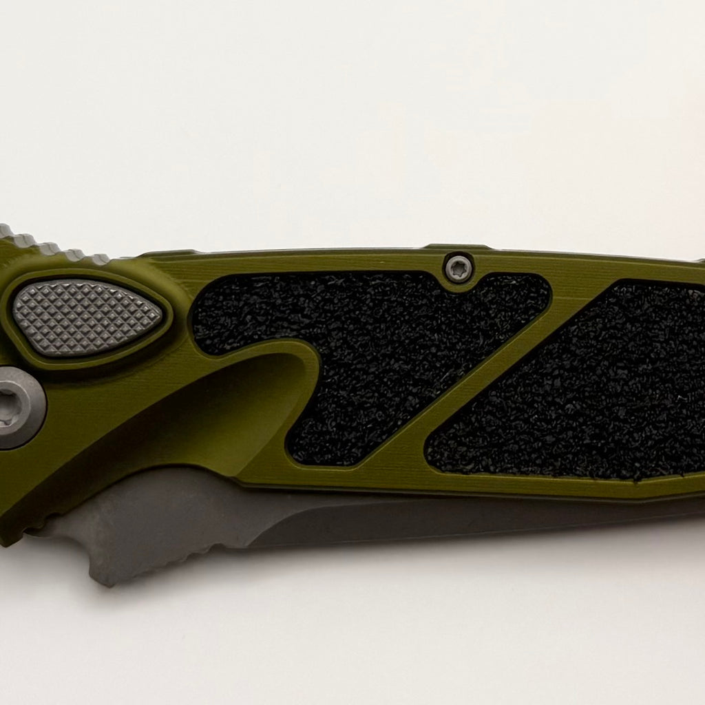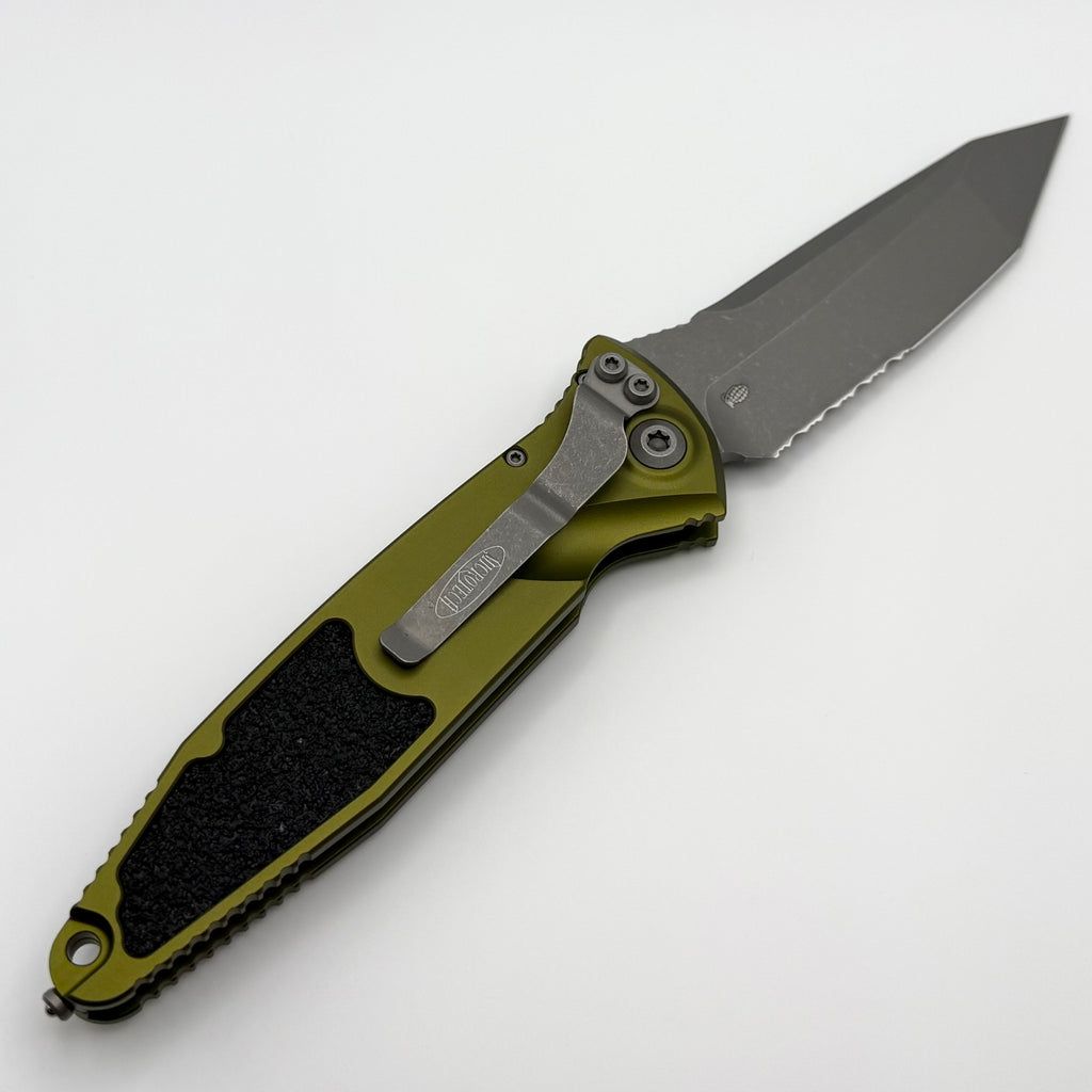 Factory Blem Microtech Socom Elite T/E Auto Partial Serrated Apocalyptic & OD Green 161A-11APOD