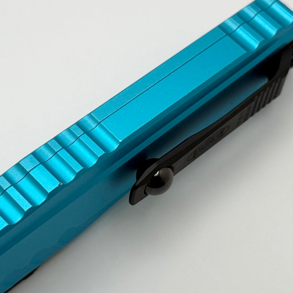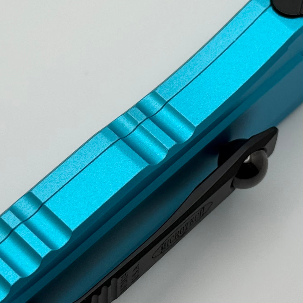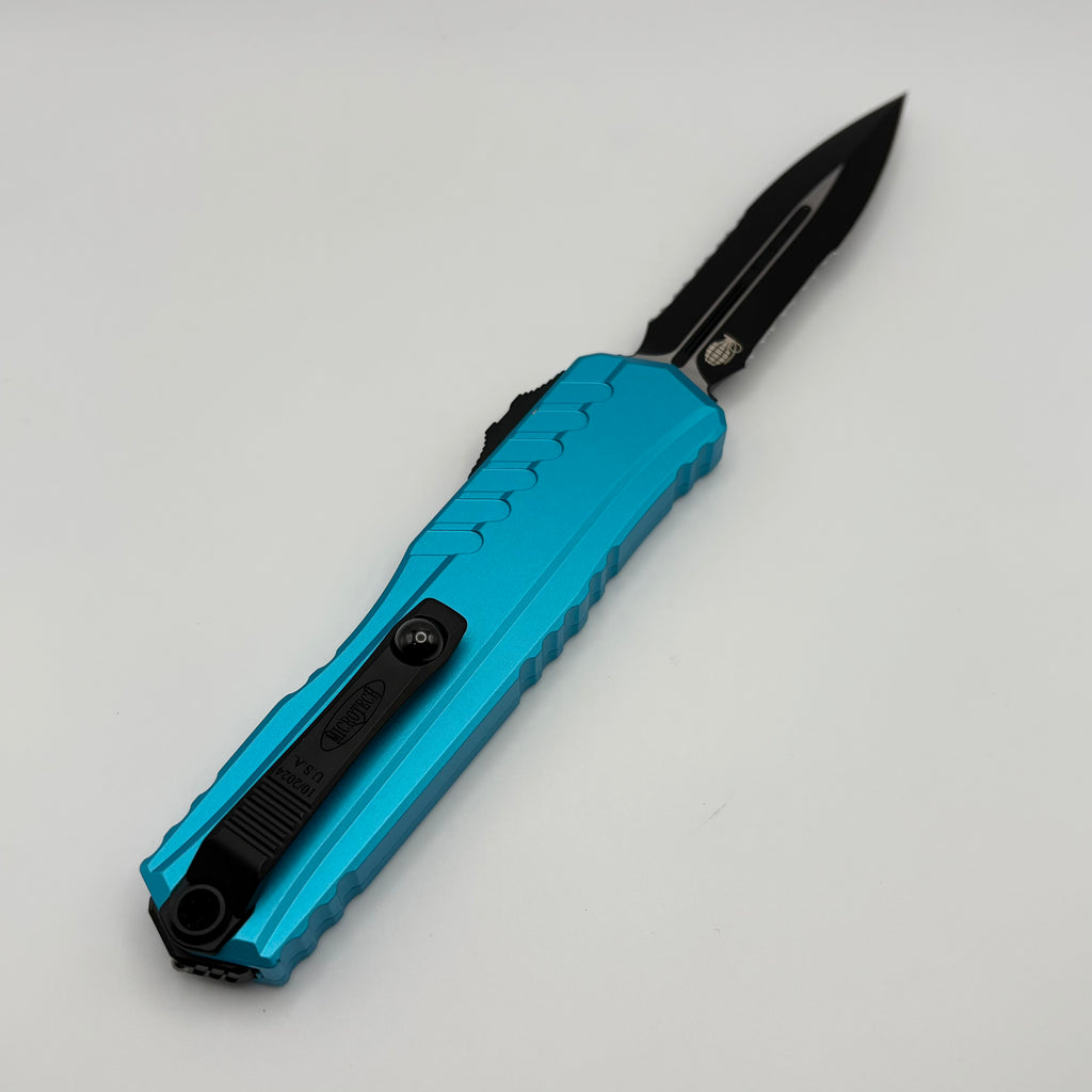 Factory Blem Microtech Cypher II D/E Black Partial Serrated w/ Turquoise Handle 1242-2TQ