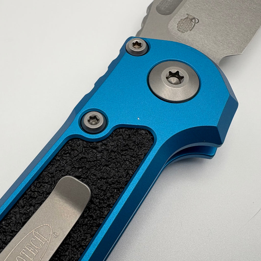 Grenade Blem Microtech Knives LUDT Gen III Stonewash Drop Point w/ Blue Handle 1135-10BL