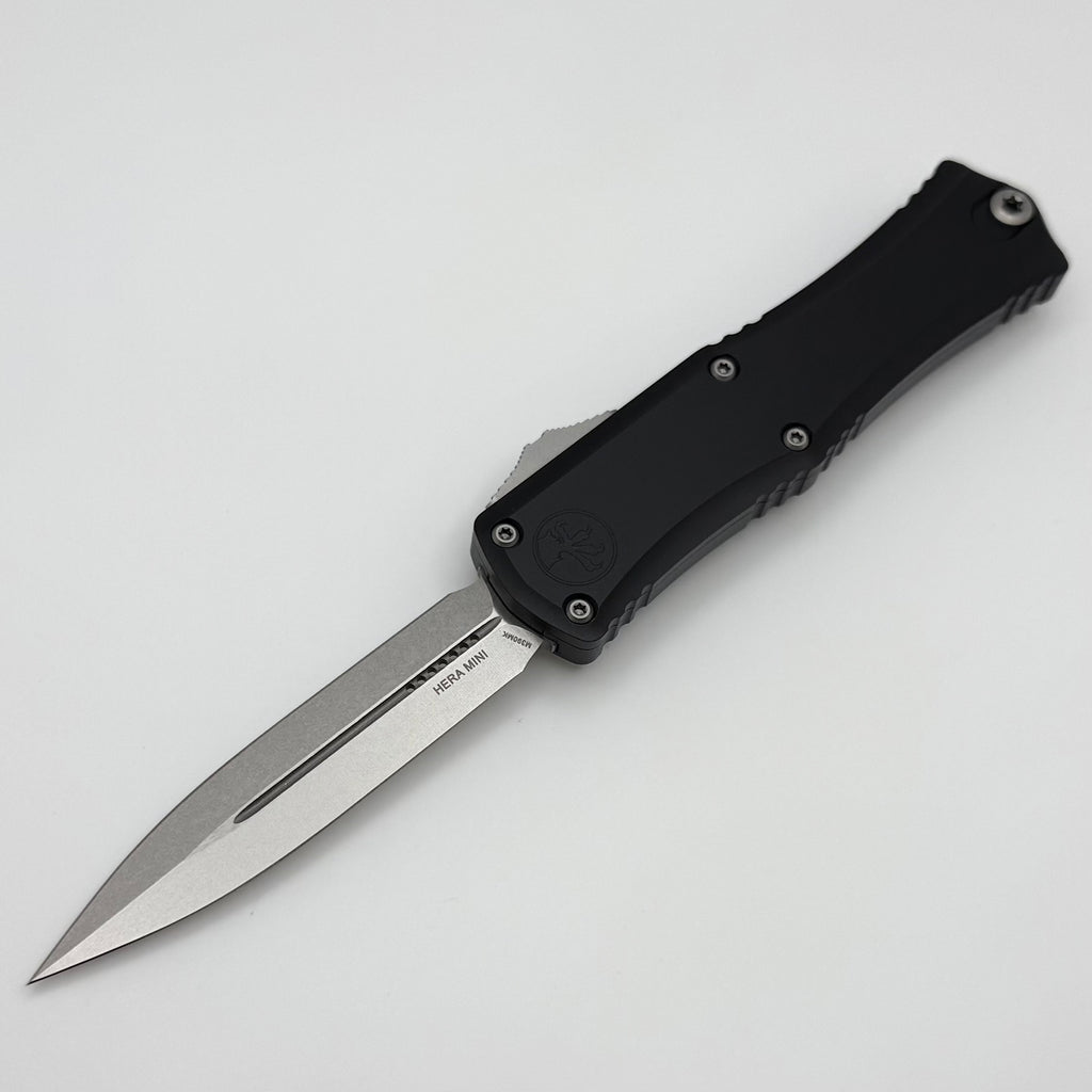 Factory Blem Microtech Knives Mini Hera Stonewash Double Edge M390MK w/ Black Handle 1702M-10