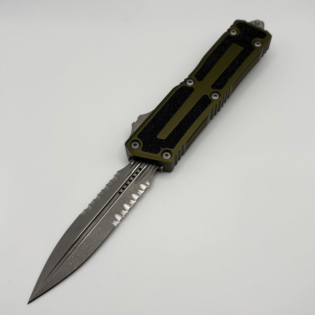 Grenade Blem Microtech Scarab 2 Gen 3 D/E Apocalyptic Partial Serrated w/ OD Green Handle 1280-11APOD