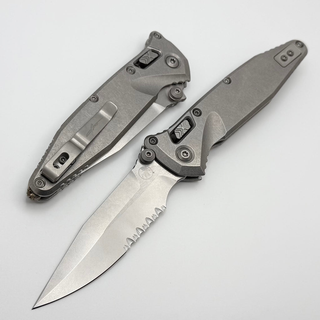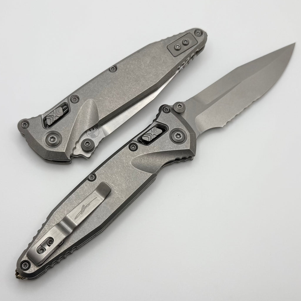 Marfione Select Microtech Socom Ram-Lok Titanium Slab Side Handles w/ Bronze Accents & Spear Point Stonewash Serrated M390MK 160RLS-11SMS2