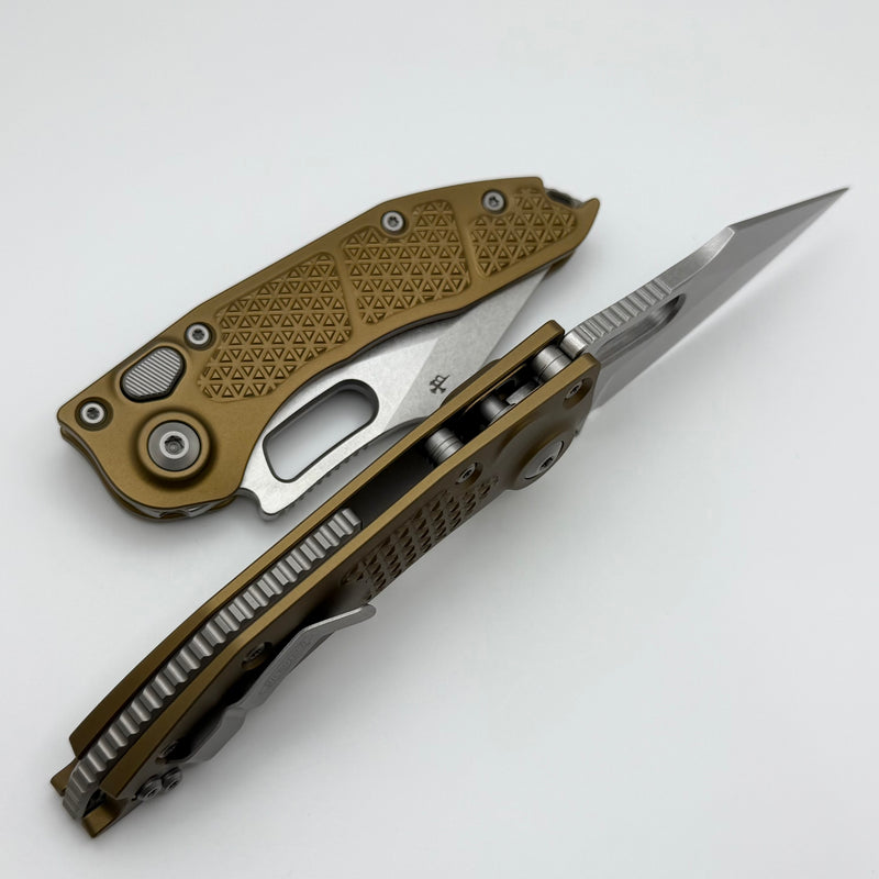 Microtech Borka Stitch Single Edge Stonewash Standard w/ Tan Handles 169-10TA