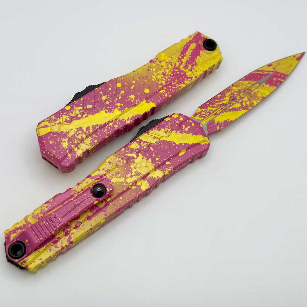 Microtech Cypher II D/E Corvette Yellow/Pink Splatter Signature Series 1242-1CYPKSPLS