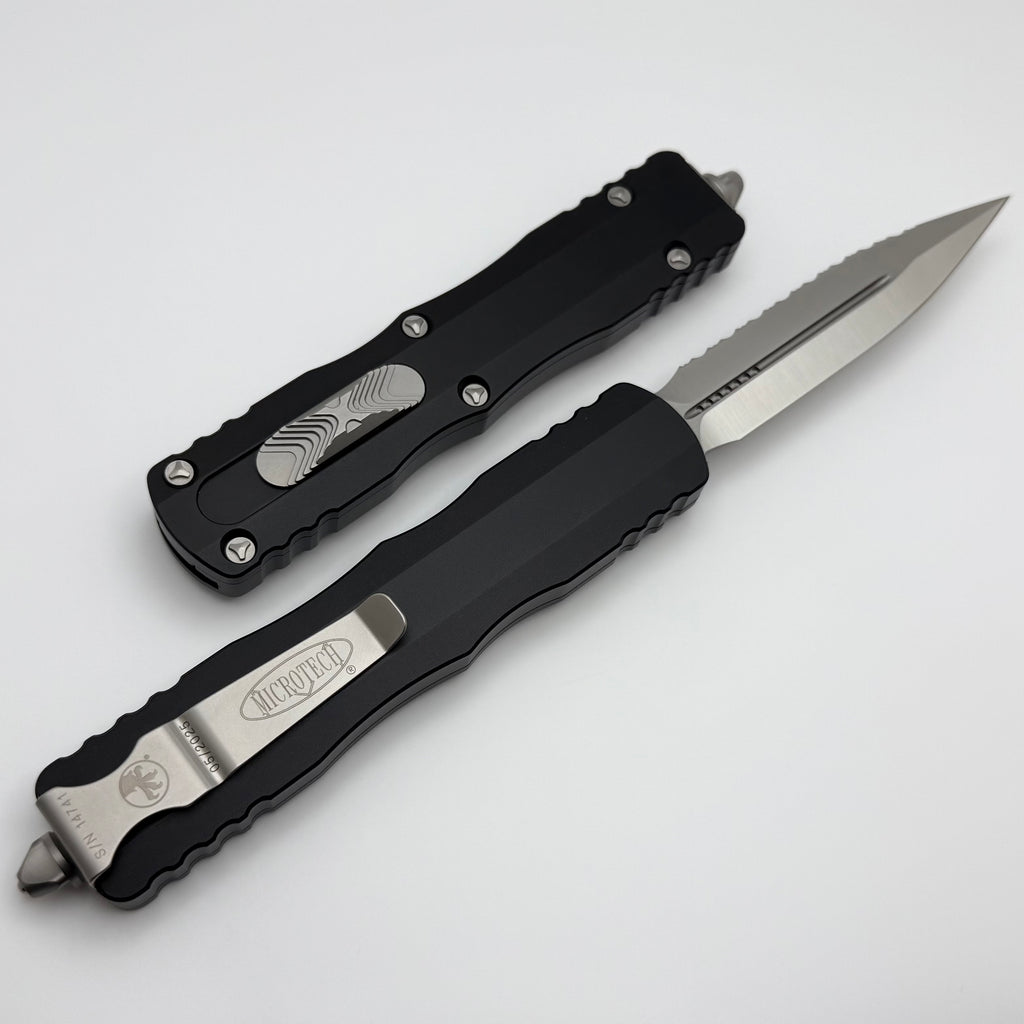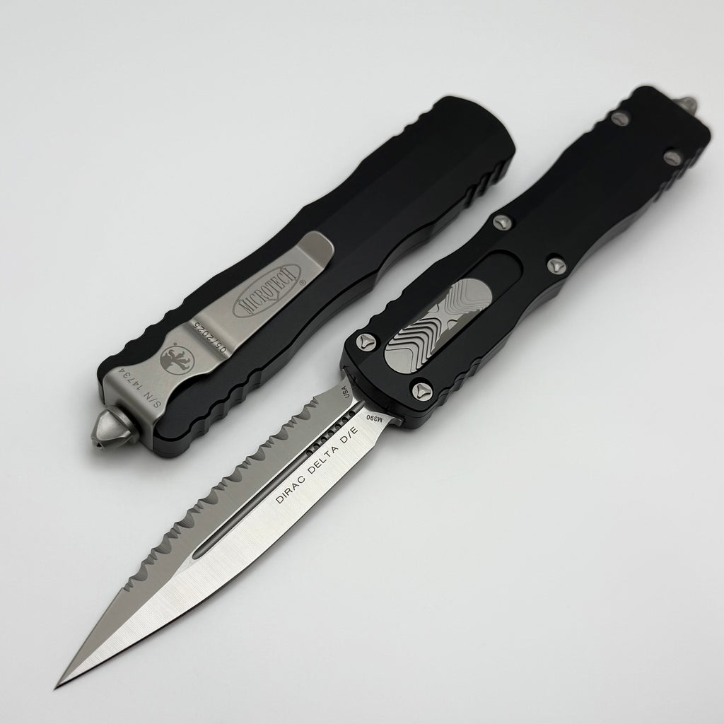 Microtech Dirac Delta D/E Satin Full Serrated w/ Black Handle 227-6