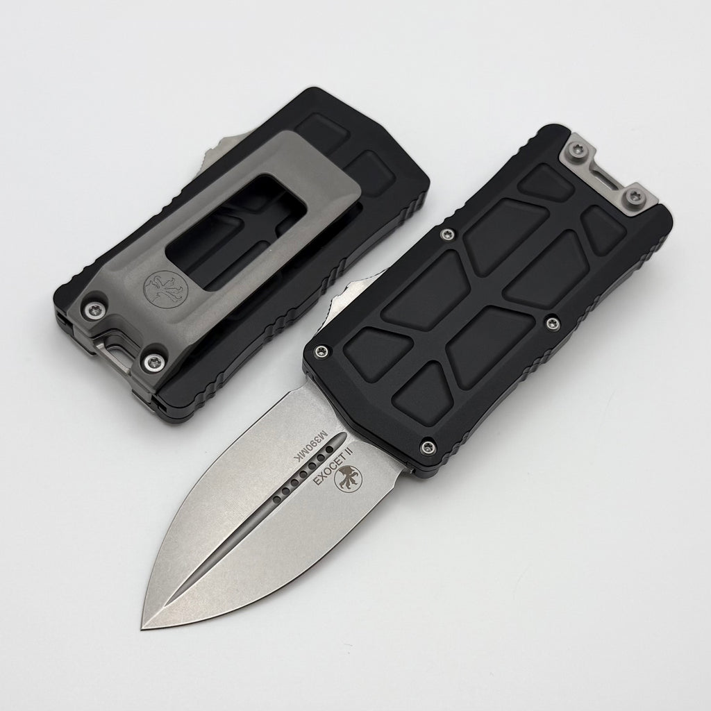 Microtech Exocet II w/ Black Aluminum Handle & Stonewash M390MK D/E 1157-10