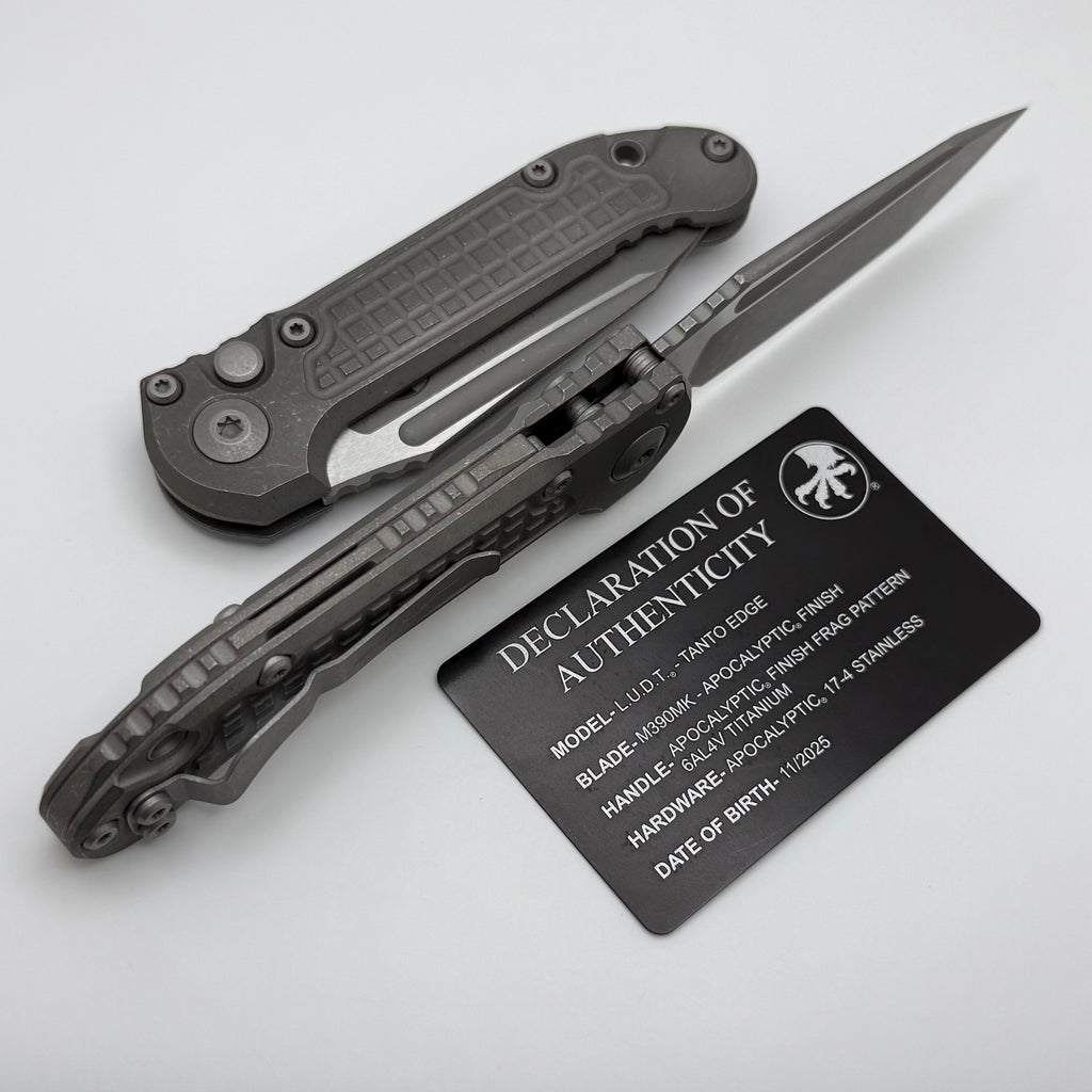 Microtech Knives LUDT Gen III Apocalyptic Tanto Frag Titanium Handles 1136-10APFRMS1