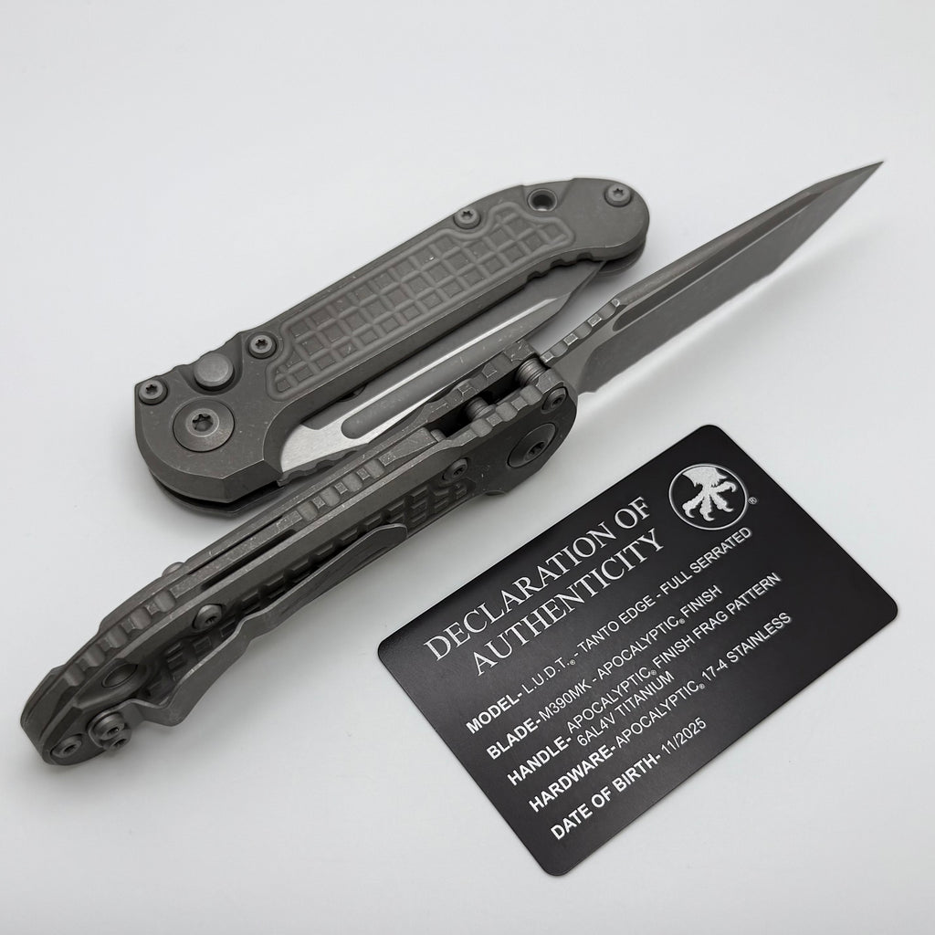Microtech Knives LUDT Gen III Apocalyptic Tanto Titanium Frag Handles & Full Serrated Apocalyptic M390MK 1136-12APFRMS1