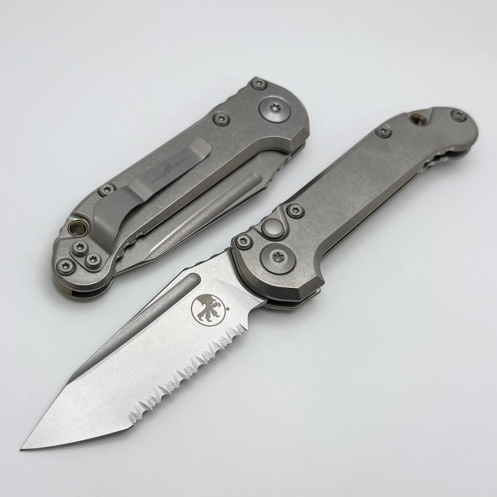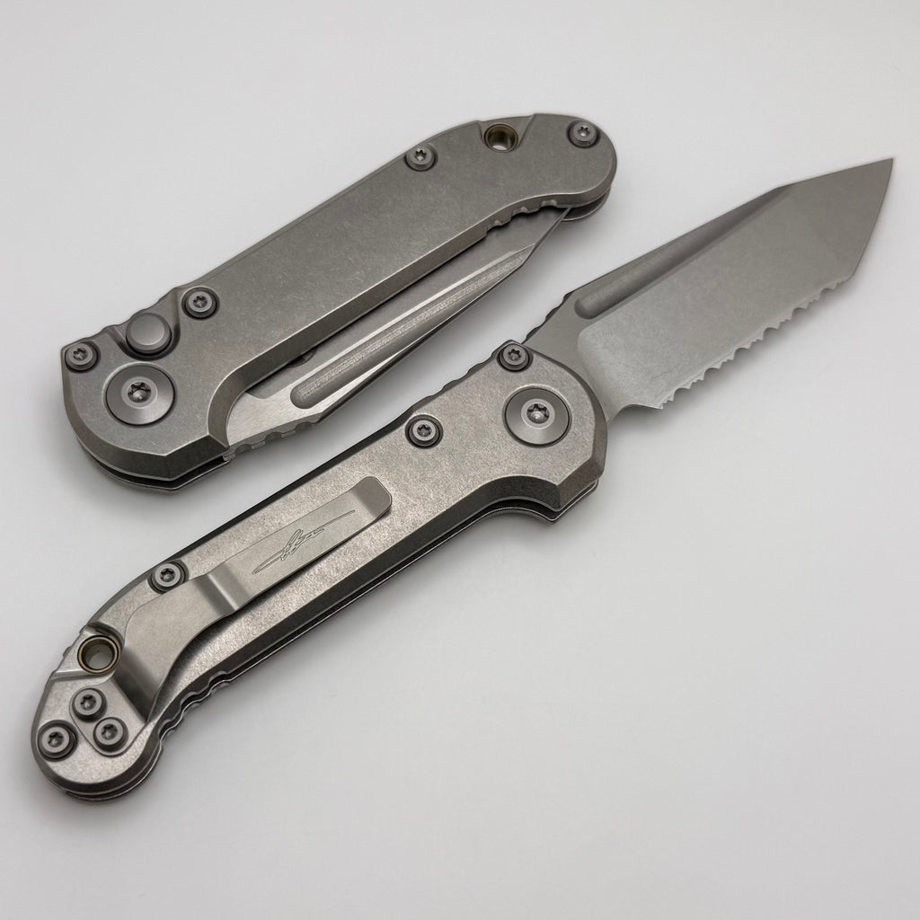 Microtech Knives LUDT Gen III Full Serrated Stonewash Tanto & Titanium Slab Side Handles w/ Bronze Accents 1136-12MS1