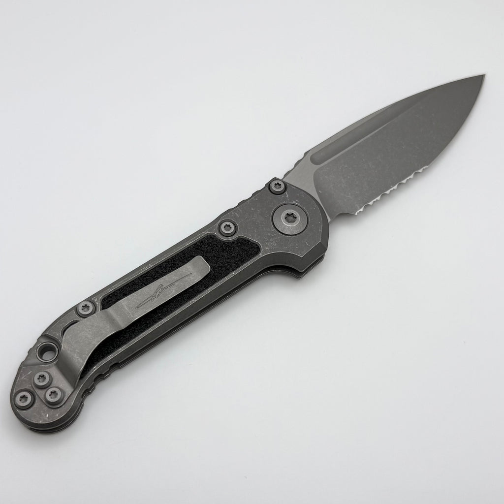 Microtech Knives LUDT Gen III Partial Serrated Apocalyptic Drop Point & Titanium Textured Inlaid Handles 1135-11APMS2