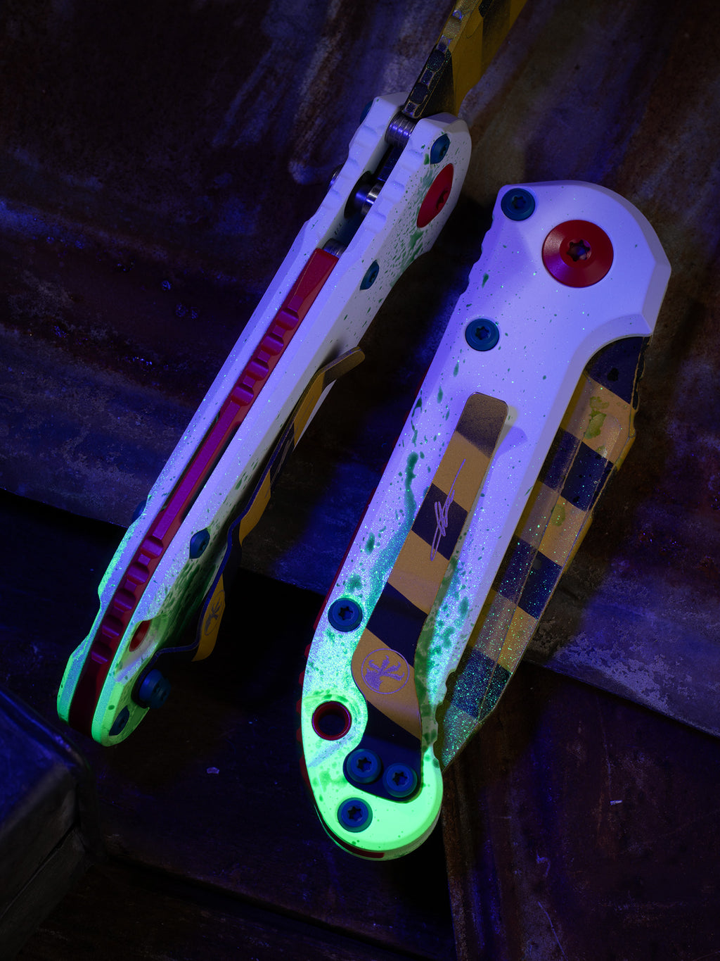 Our next exclusive is in from our good friends at Microtech! Grab one while you can! Each knife is unique and different, no two UV Reactive splatter patterns will be the same.