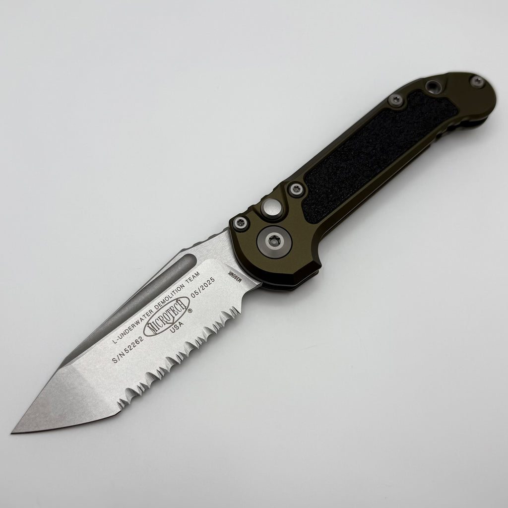 Microtech Knives LUDT Gen III Stonewash Tanto Full Serrated w/ OD Green Handle 1136-12OD
