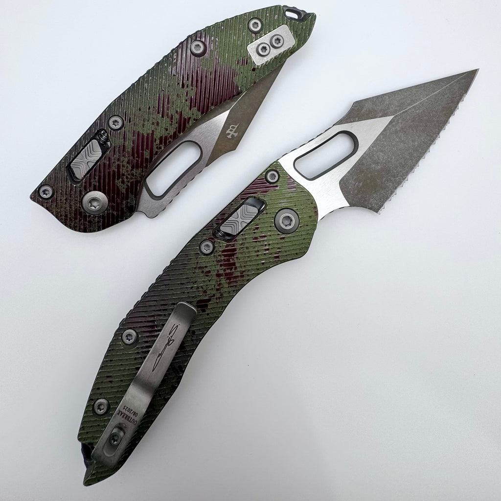 Microtech Knives Manual Stitch RAM LOK Fluted Aluminum Outbreak w/ Full Serrated M390MK Signature Series 169RL-3FLOBS