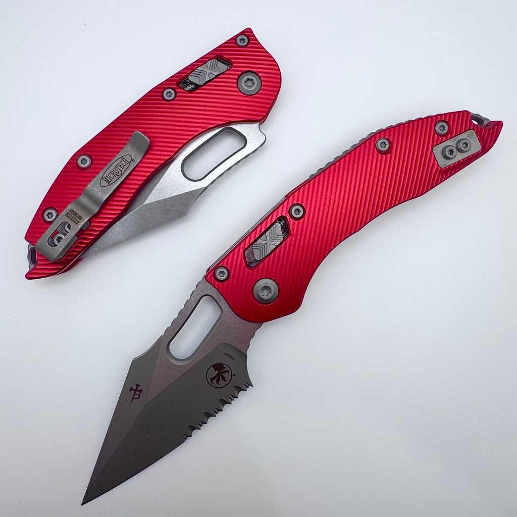 Microtech Knives Manual Stitch RAM LOK Fluted Red Aluminum & Partial Serrated M390MK Apocalyptic Standard 169RL-11APFLRD