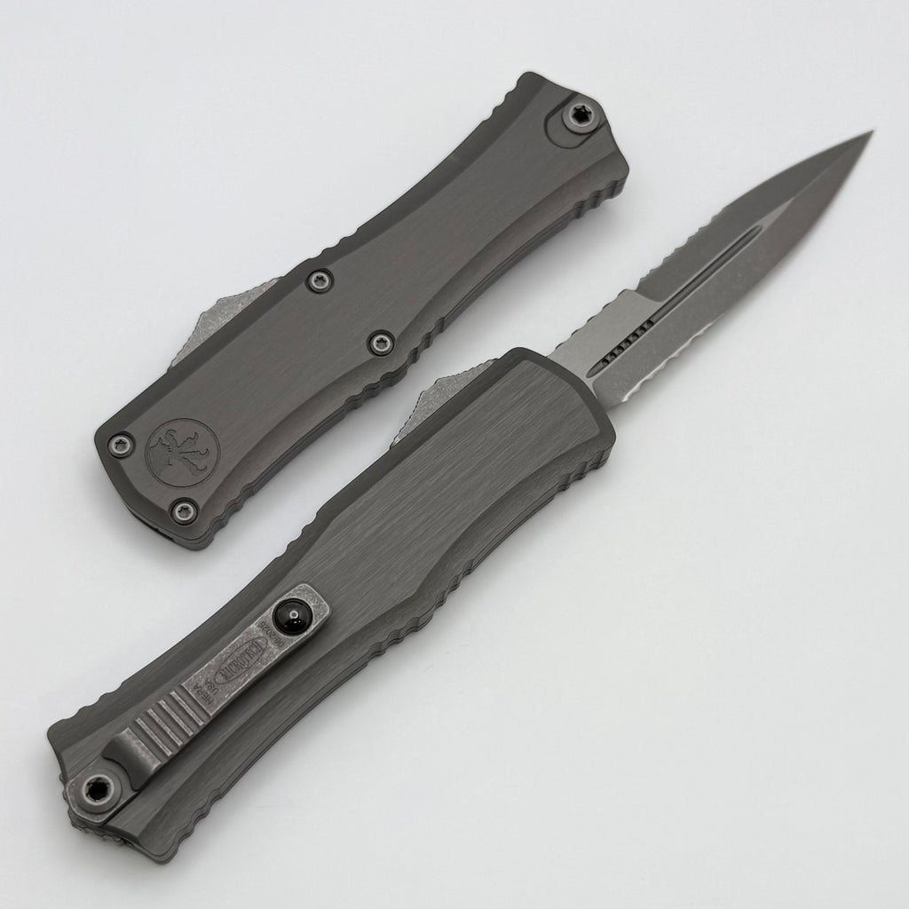The all new Mini Hera from Microtech Knives is here! This is a smaller and improved version of the original Hera with an integrated glass breaker and a ceramic ball titanium pocket clip. The new OTF drive system makes these knives the smoothest that Microtech has ever produced. Extremely smooth/easy opening and closing. The new switch now rides on a milled platform, this helps break up pocket lint/debris and reduces friction which increases its reliability and lowers the frequency of cleanings. These are sure to please and a wonderful EDC!