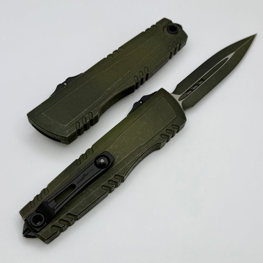 Microtech Luminary D/E Weathered Grenade Green w/ Tritium Inlaid Slider Signature Series 1270-1WGGS