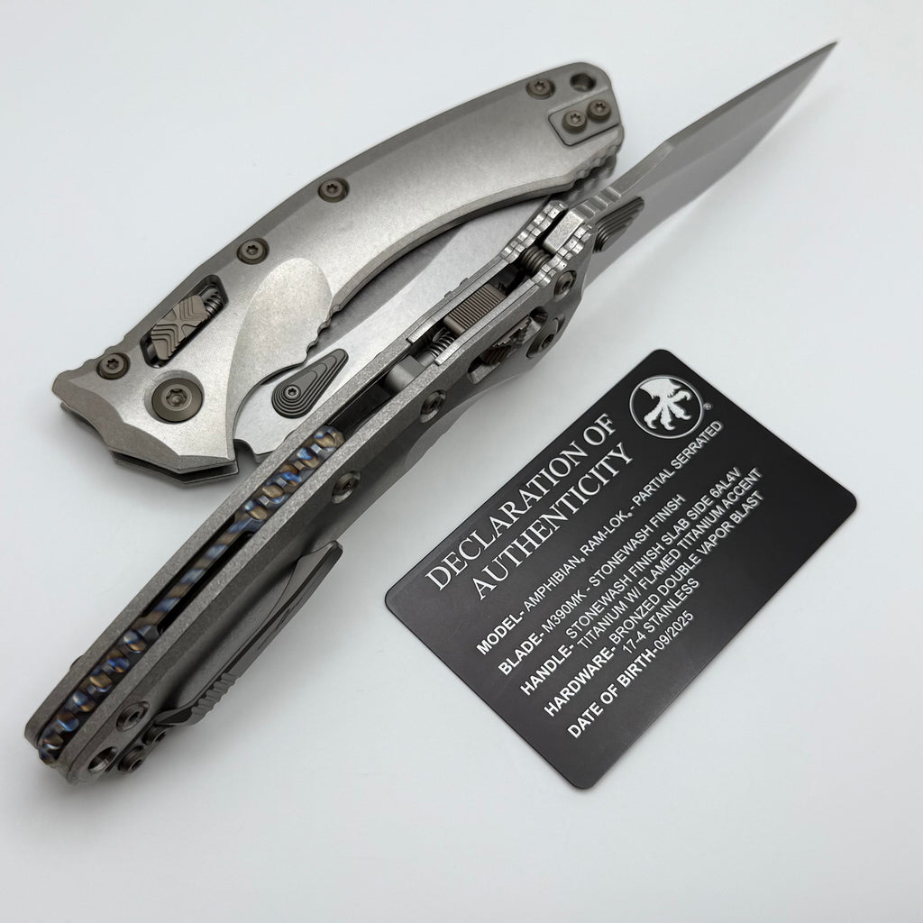 Microtech Marfione Select Amphibian RAM LOK Titanium Handles & Partial Serrated Stonewash M390MK w/ Double Vapor Blast & Flamed Accents 137RL-11MS4