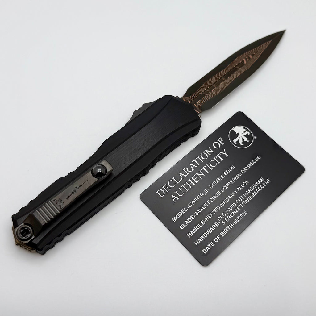 Microtech Marfione Select Cypher II Black w/ Tritium Inlaid Button & D/E Baker Forge Copper-Mai 1242-16MS3