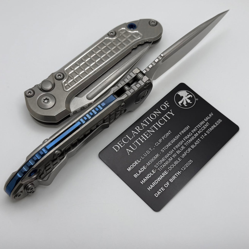 Microtech Marfione Select LUDT Gen III Frag Titanium Handles w/ Blue Accents & Stonewash S/E 1135-10FRMS2