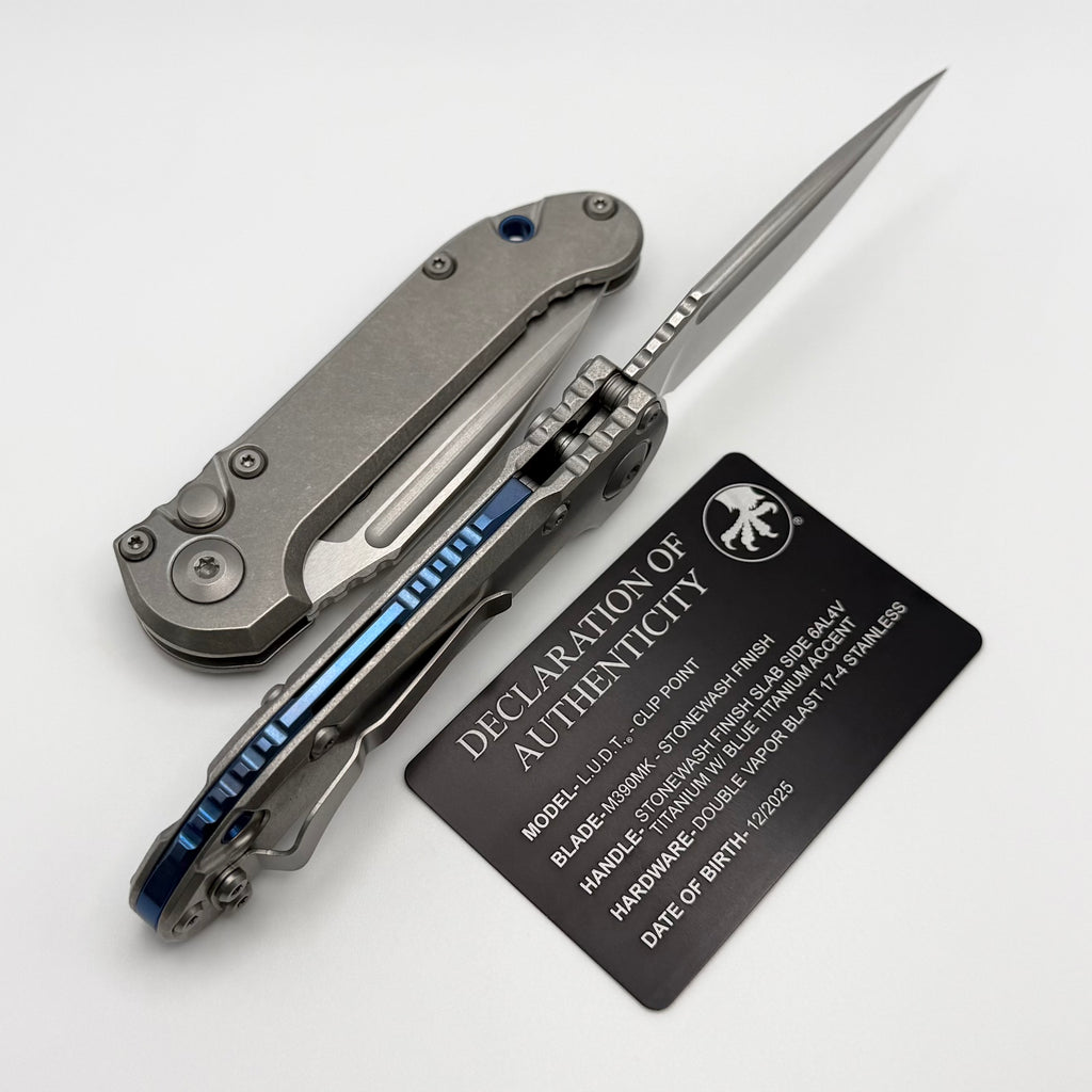 Microtech Marfione Select LUDT Gen III Slab Side Titanium Handles w/ Blue Accents & Stonewash S/E 1135-10MS3
