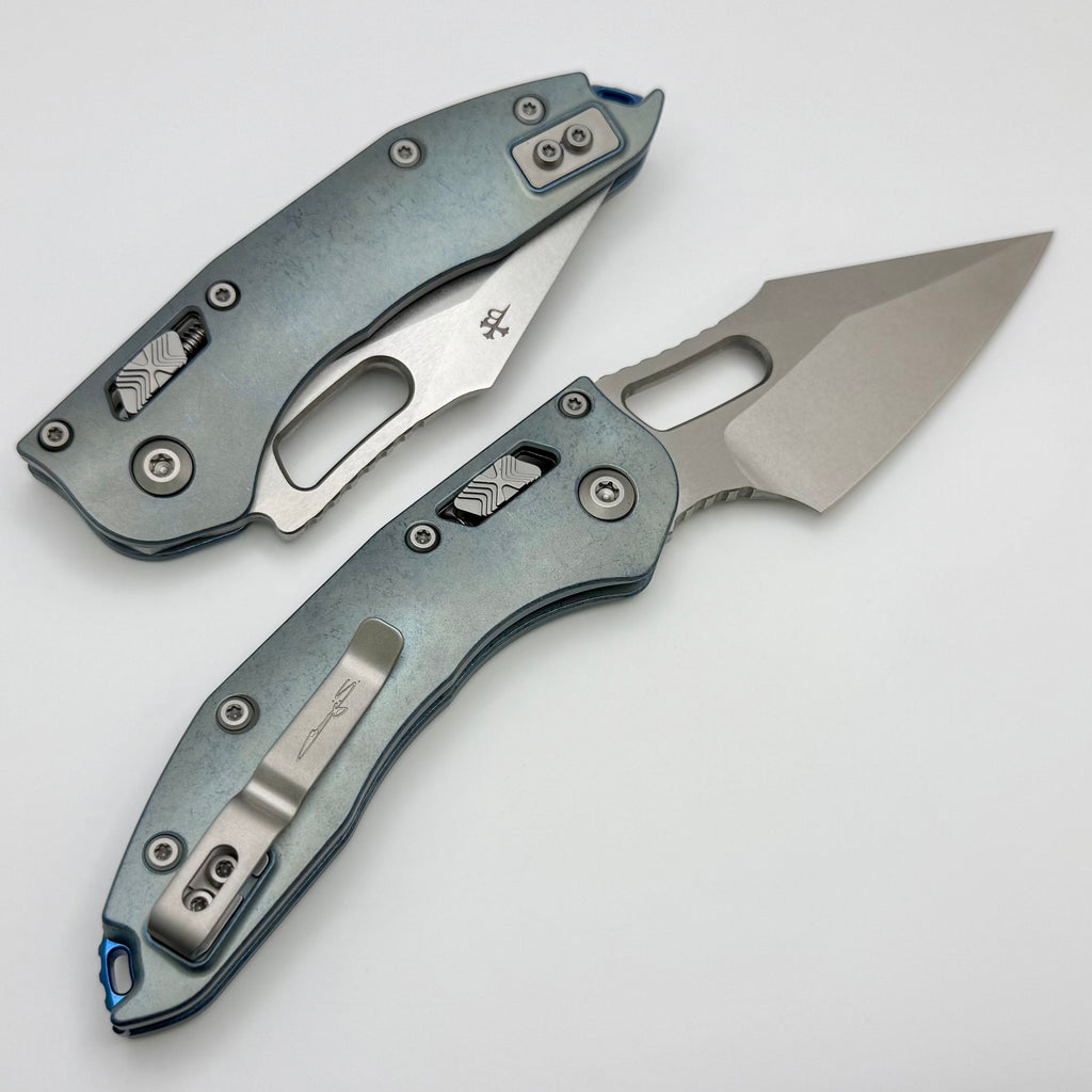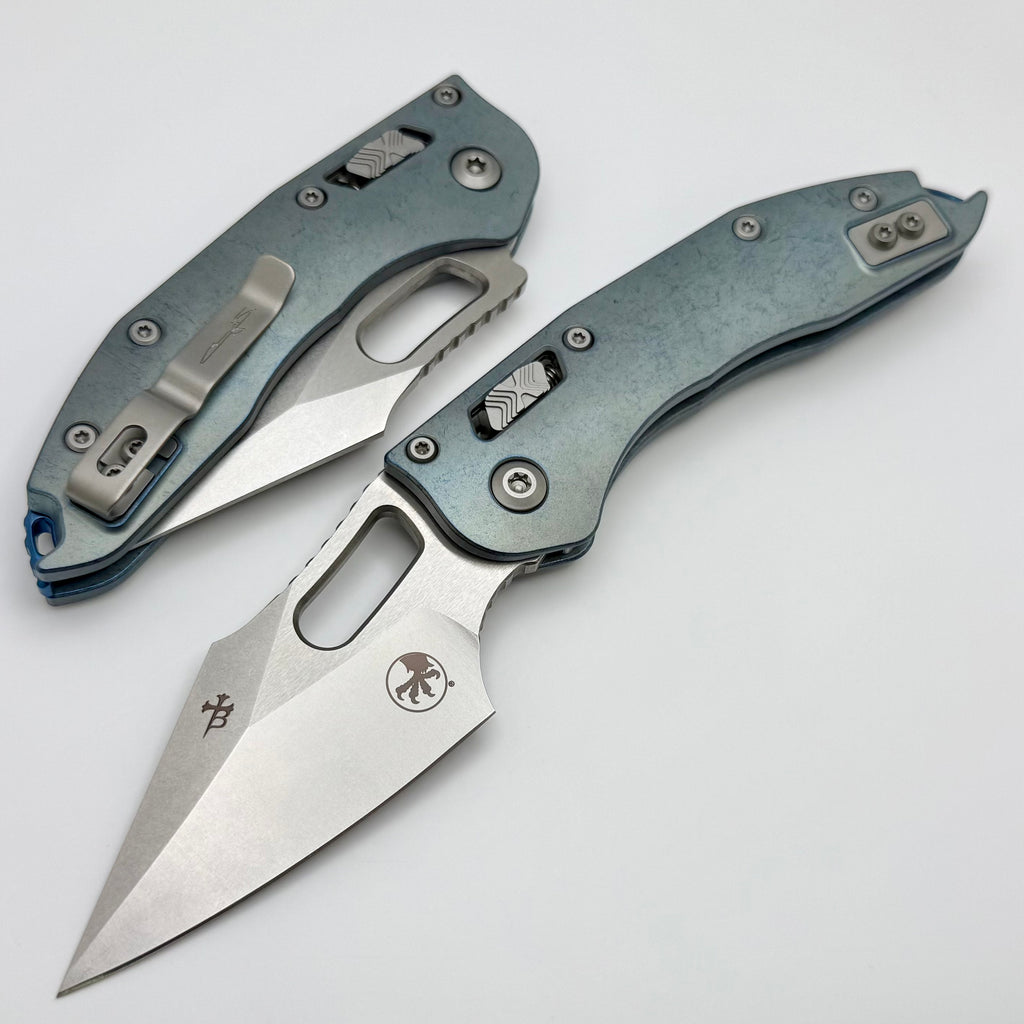 Microtech Marfione Select Manual Stitch RAM LOK Ice Blue Titanium Handles & Stonewash M390MK w/ Double Vapor Blast/Blue Accents 169RL-10MS6